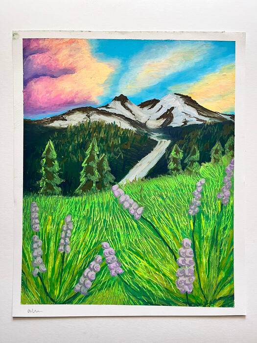 I'm Destin and I'm a self taught artist originally from Seattle, WA, and currently residing in San Diego, California. I specialize in Acrylic painting and Digital illustration, but am familiar with a variety of mediums, techniques, styles, and subjects.My art journey started at a young age as a way for me to cope with my mental health issues and trauma, but what started as a way to cope and vent blossomed into a passion for artistic creation in all forms, and eventually motivated me to start selling my artwork in 2018.I've been selling paintings & illustrations, commissions, prints, stickers, and more since then, and hope to continue on for the rest of my life.My landscape paintings are a way for me to connect with nature and honor it in a way that I can enjoy it from home, as I struggle with chronic pain and am unable to go hiking like used to. I grew up hiking through nature trails in Oregon and Washington with my family, and nature feels like my true home. Painting my favorite nature spots that I can remember is a way for me to find happiness when things inside feel dark.I also still utilize my art as a way to vent. I was diagnosed with CPTSD at a young age, and was diagnosed with a DID in 2020, and utilize my art as a way to share my feelings around my trauma in a way that feels safe so that my feelings don't eat my alive. I don't share most of these works, but some are available on my instagram.
