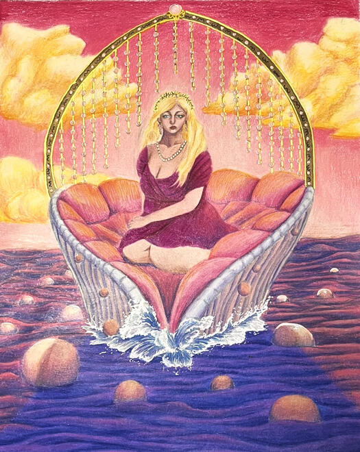 Aphrodite- Original Colored Pencil Drawing- 17x14 - 300$ (Framed)